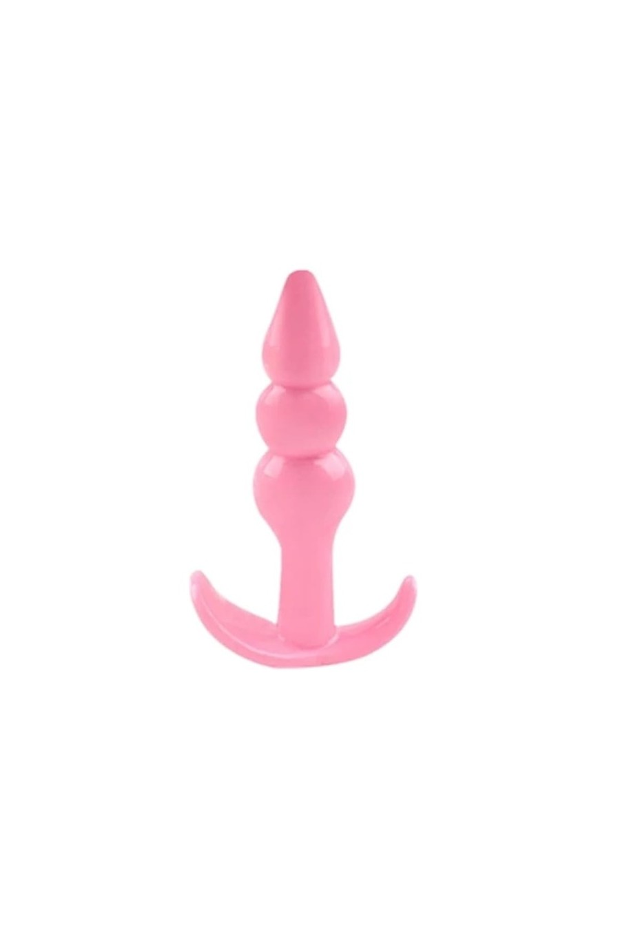 Plug anal de silicona con tres diferentes bolitas de mayor a menor diámetro y tope en la base. Silicona flexible.